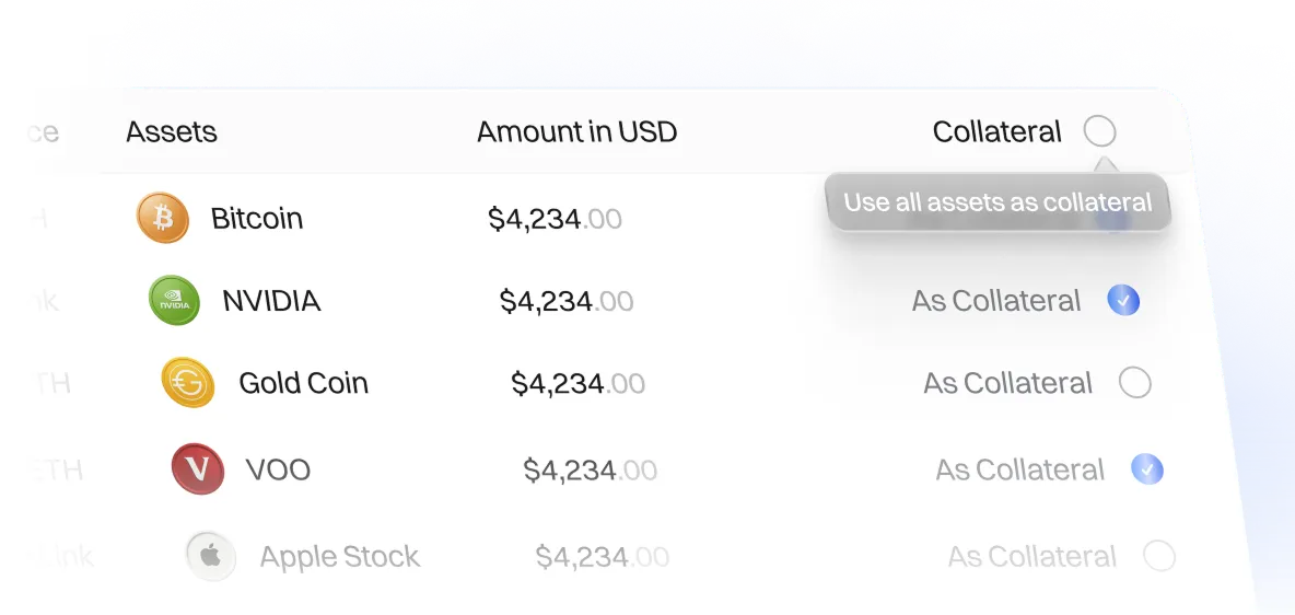 Use crypto, stocks, ETFs, or commodities as collateral to access credit.